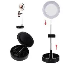 El anillo de luz LED con espejo y soporte para celular convierte cualquier espacio en un mini estudio. Ofrece una iluminación uniforme y regulable que mejora la calidad de tus fotos, videos y transmisiones en vivo, permitiéndote ver cada detalle con claridad.
