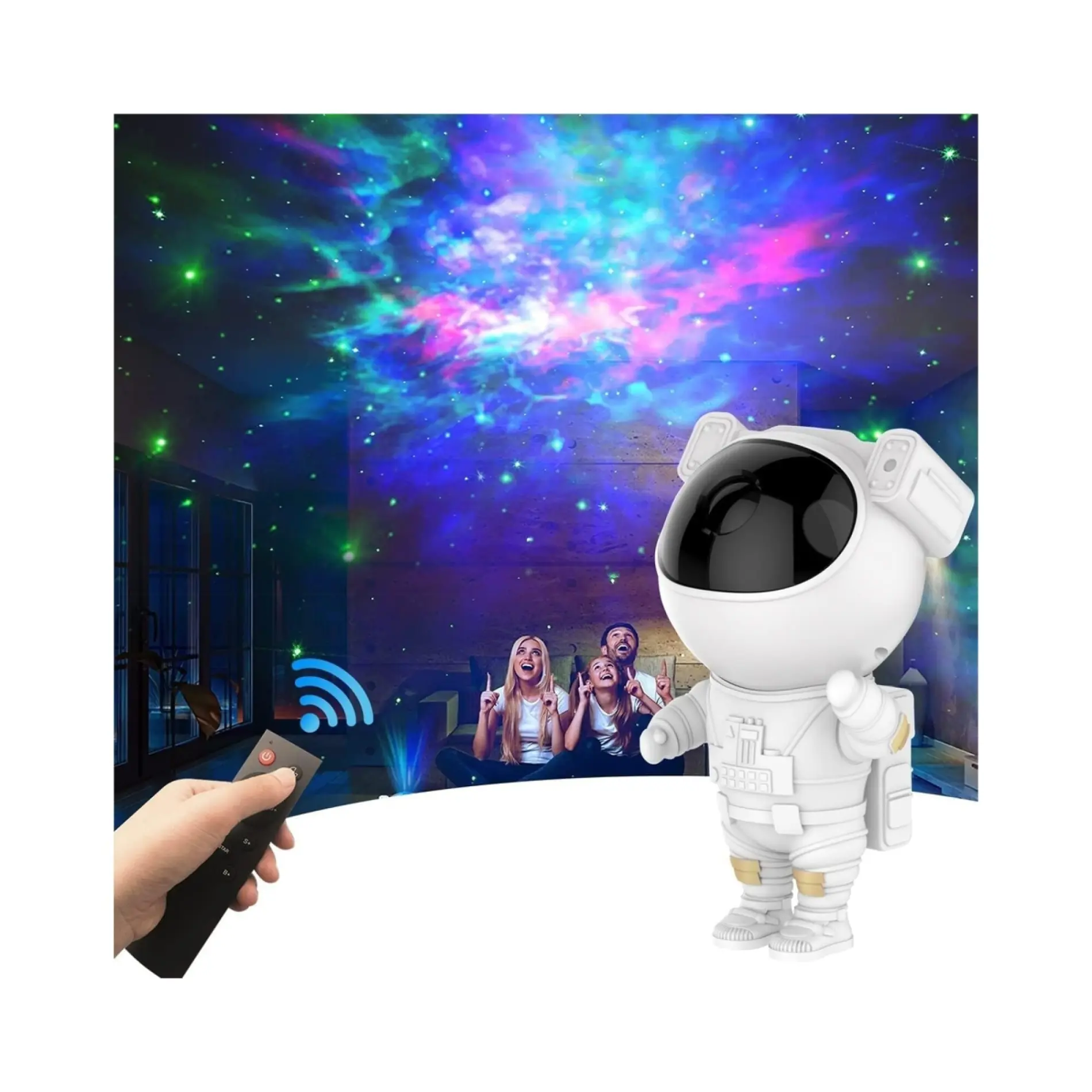 Su diseño adorable y decorativo, combinado con múltiples efectos de luz, convierte cualquier espacio en una experiencia visual envolvente con temática espacial.