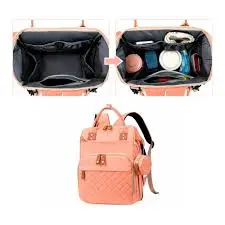 Su amplio compartimento principal y sus múltiples bolsillos organizadores permiten guardar pañales, mamaderas, ropa, toallitas y accesorios de manera ordenada y siempre al alcance.
