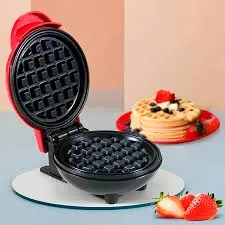 La mini waflera eléctrica roja es ideal para disfrutar waffles frescos en minutos, perfecta para desayunos, meriendas o antojos dulces sin complicaciones.