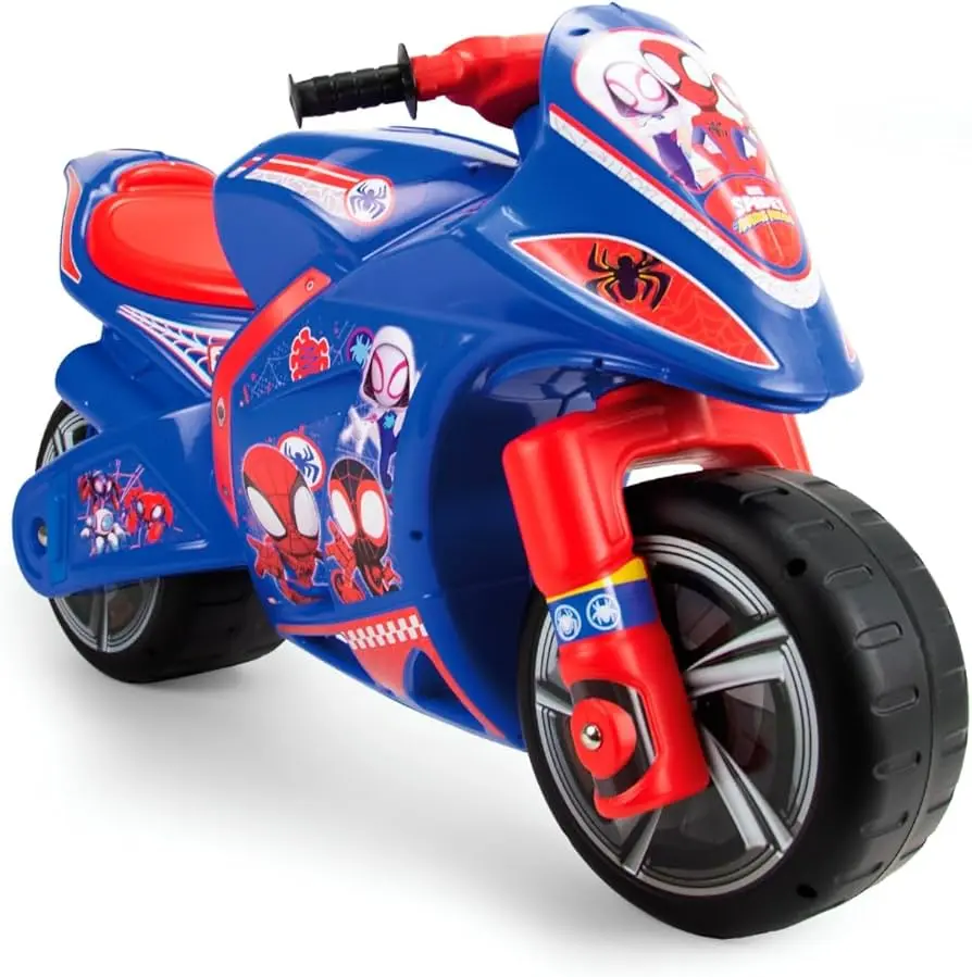 Esta moto corre pasillo es la compañera ideal para que los niños disfruten de horas de juego, con un diseño inspirado en Spider-Man, colores vibrantes y detalles que hacen volar su imaginación.
